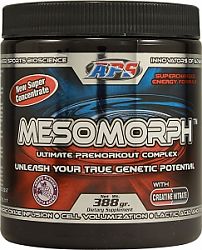 3.APS Mesomorph – все, что нужно для стремительного роста прогресса, нет ничего лишнего. Никаких накопителей, балластных веществ, никаких не полных порций. Содержит только то, что научно доказано в лабораториях и в спортзалах. Содержит несколько формул креатинов: креатин фосфат и креатин нитрат. Инкарин – увеличивает либидо и еректильную функцию. 1,3 диметиламиламине или герань – сильный стимулятор ЦНС. Таурин – стимулятор ЦНС, увеличивает синтез тестостерона.