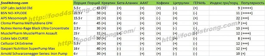 Интернет магазин спортивного питания food4strong.com представляет рейтинг предтреников и энергетиков. Думаем, информация будет весьма полезной, так как больше нигде нет полного анализа предтреников и энергетиков.
