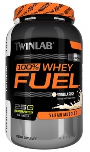 Купить Twinlab 100% Whey Protein Fuel - сывороточная смесь концентрат и изолят белка, с очень высокой биодоступностью. Протеины твинлабс прекрасно растворяются в воде и обладают прекрасным вкусом и запахом.
